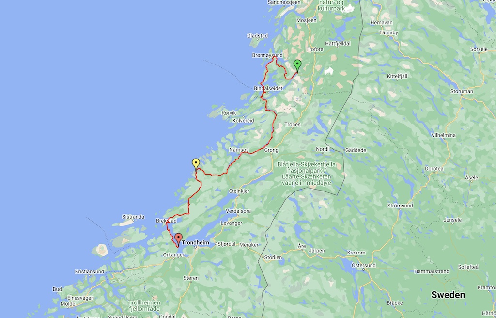 Dag 10, 25 juni 2022, Tosbotn (N) - Orkanger (N), 503 km, totaal 5866 km